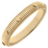 The Constance Heart Watchband Bangle combines timeless elegance with delicate heart accents, adding a refined charm to any outfit. Crafted from sturdy base metal with a satin gold plating, this 2.5" diameter slip-on bangle is a versatile accessory that seamlessly elevates your style.